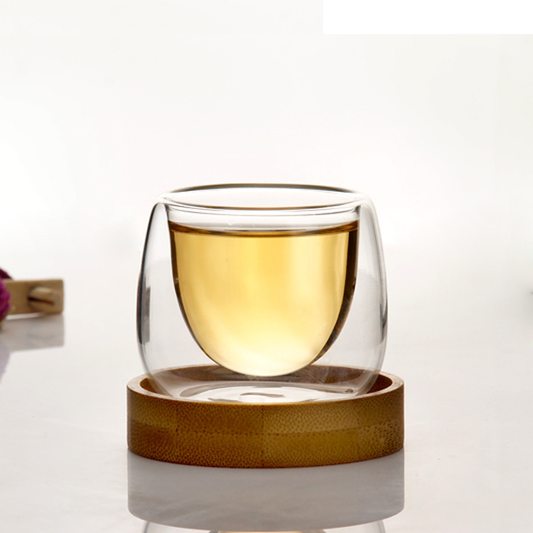 Double Wall Glass Tea Cup with Bamboo Coaster