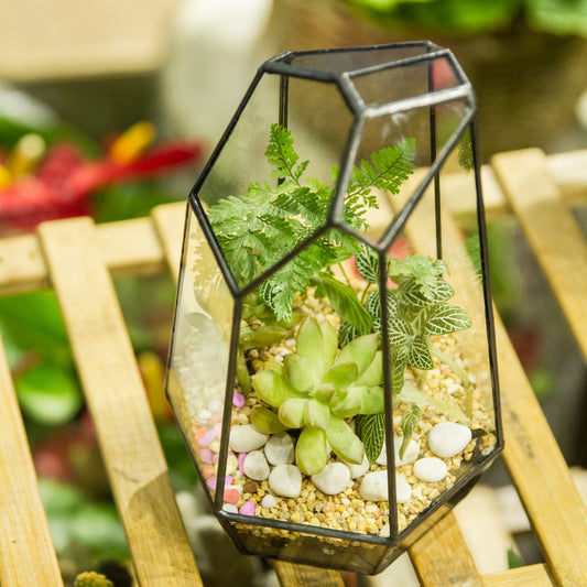 Natural Crystal Point Style Tabletop Glass Terrarium