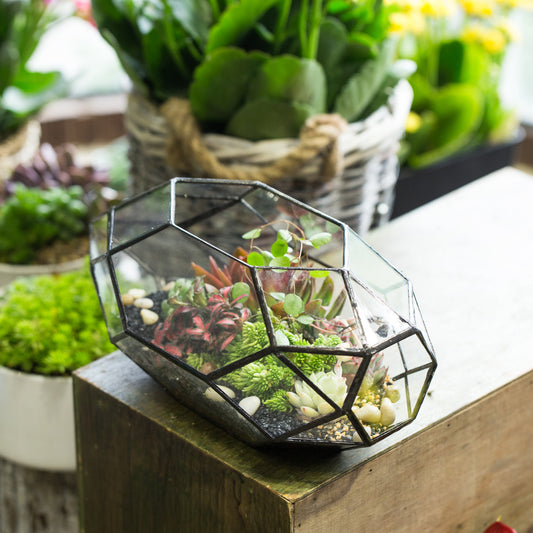 Symmetrical Crystal Point Style Tabletop Glass Terrarium