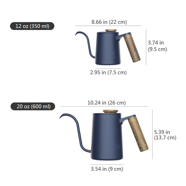Beautifully designed, these ergonomic coffee kettles feature a large steam vent that fits most thermometers, as well as a long gooseneck spout which provides a fine and precise control of the water flow, allowing you to extract the just right amount of the aroma and flavor from your favorite coffee grounds.
